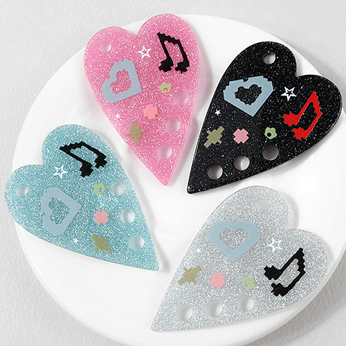 - 싼비즈 [6785-24]아크릴펜던트 키링 연결 펀칭글리터하트 40x59mm ,1개