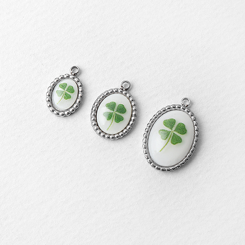 - 싼비즈 [8-151-20]써지컬스틸 펜던트 도트타원 에폭네잎클로버 소 중 대 ,1개
