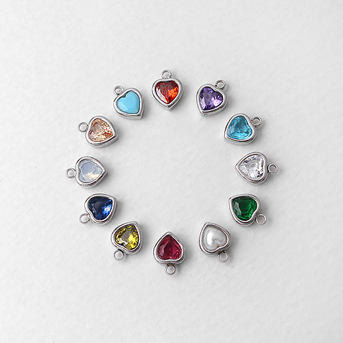 - 싼비즈 [8-159-01]써지컬스틸 펜던트 탄생석 하트 6mm ,1개