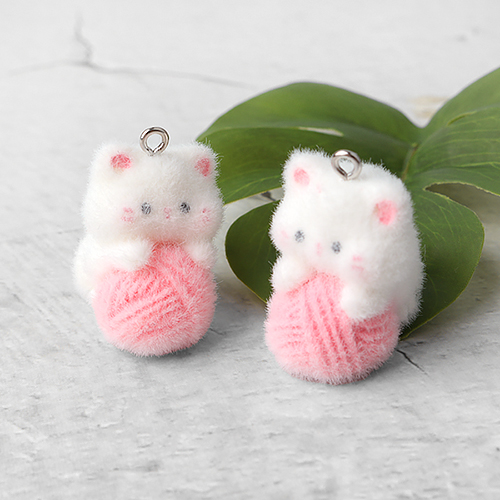 - 싼비즈 [6628-64]후로킹펜던트 실타래고양이양고리 19x25mm ,1개