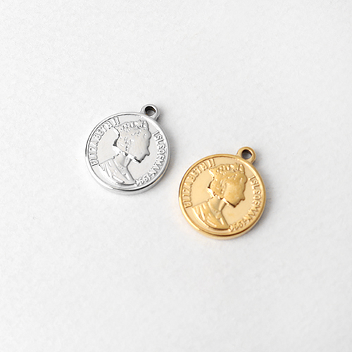 - 싼비즈 [8-030-04]써지컬스틸 펜던트 양면엘리자베스코인 14mm ,1개