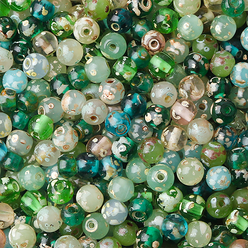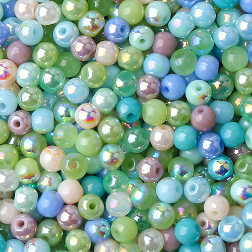 - 싼비즈 [4973-10]글라스비즈 주판알 6mm 오팔그린믹스 ,10g