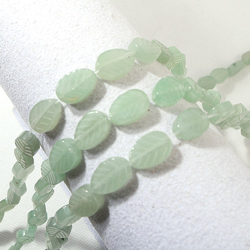 - 싼비즈 [5-511-02]원석나뭇잎 중 8x12mm 그린하울라이트 ,반줄(약14개)