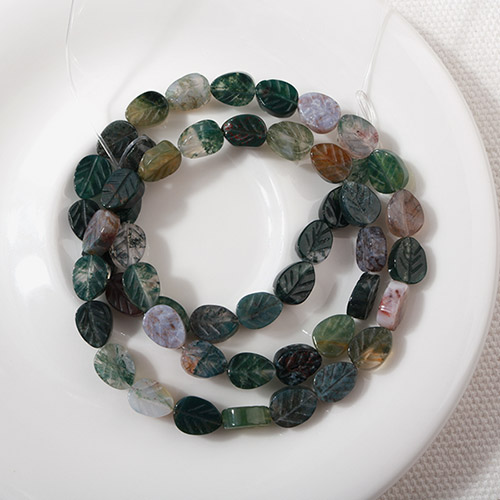 - 싼비즈 [5517-02]원석나뭇잎 소 6x8mm 인도마노 ,반줄(약23개)
