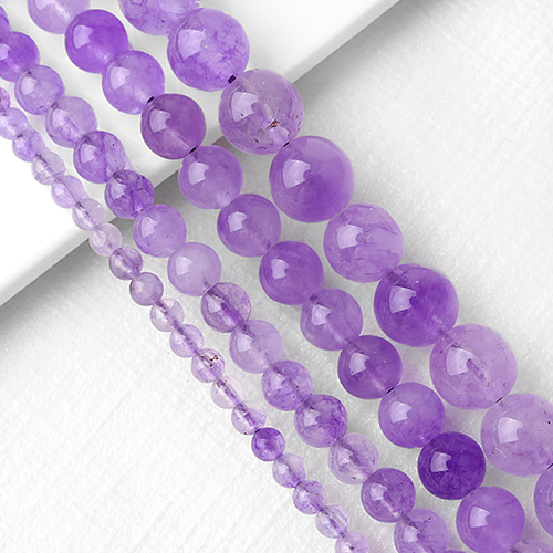 - 싼비즈 [5200-05]원석 라운드 신백옥 6/8mm 투톤퍼플 ,반줄