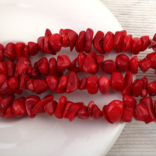 - 싼비즈 [5595-24]원석 칩스 대 (7월탄생석/루비) 산호 ,1줄(약80cm)