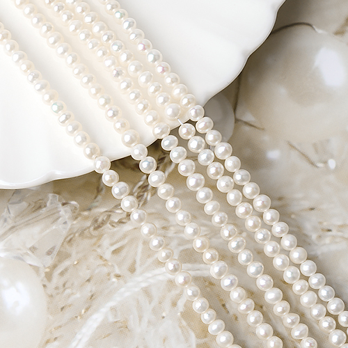 - 싼비즈 [6018]담수진주 라운드 약4mm A급 화이트 ,1줄(약110개)