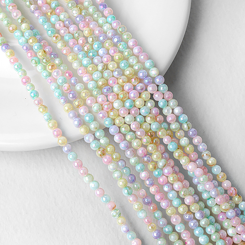 - 싼비즈 [6123-03]자개 라운드 3mm 파스텔오로라 ,1줄(약125개)