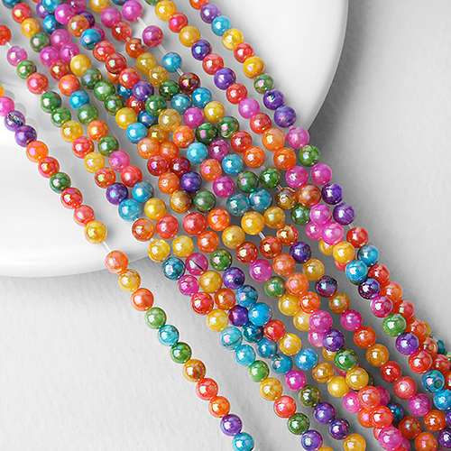- 싼비즈 [6123-04]자개 라운드 4mm 레인보우오로라 ,1줄(약95개)