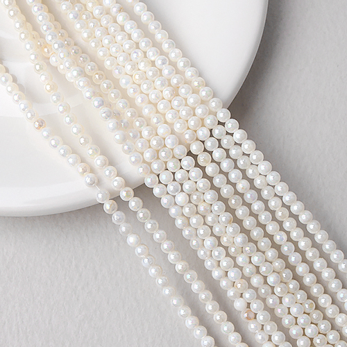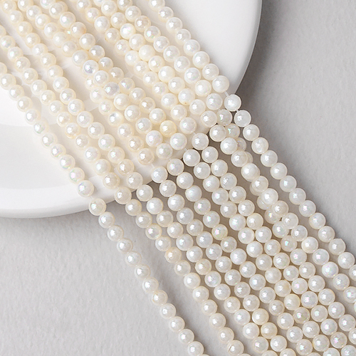 - 싼비즈 [6123-05]자개 라운드 3mm 화이트오로라 ,1줄(약125개)