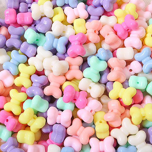 - 싼비즈 [6420-06]아크릴통과형 하트리본 11mm 파스텔믹스 ,10개
