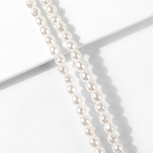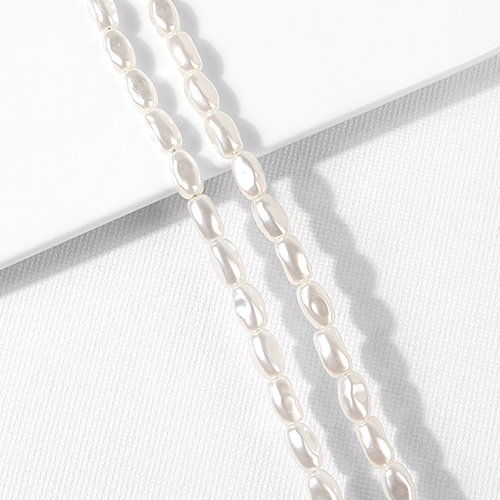 - 싼비즈 [6369-04]아크릴진주 비화 4x7mm 크림 ,1줄(약60개)