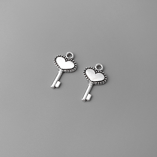 - 싼비즈 [7374-08]메탈펜던트 도트하트열쇠 10x17mm 은엔틱 ,1개