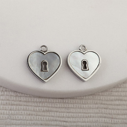 - 싼비즈 [8-126-03]써지컬스틸 펜던트 자개하트열쇠 17x19mm ,1개