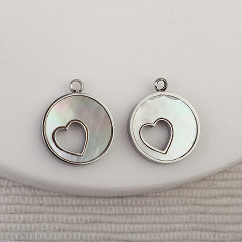 - 싼비즈 [8-101-05]써지컬스틸 펜던트 원&하트자개 12x14mm ,1개