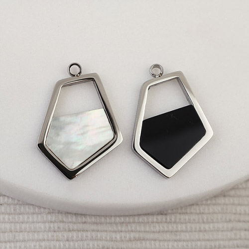 - 싼비즈 [8-101-06]써지컬스틸 펜던트 자개,오닉스다각형 14x19mm ,1개