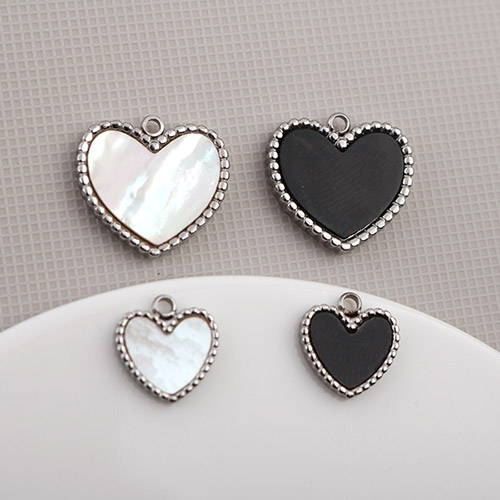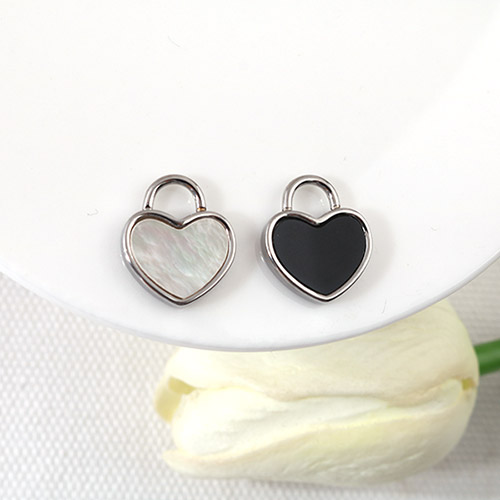 - 싼비즈 [8-011-01]써지컬스틸 펜던트 자개,오닉스도트하트/소/대 10/15mm ,1개