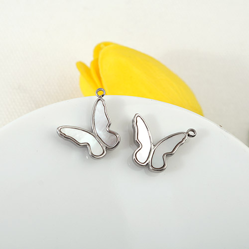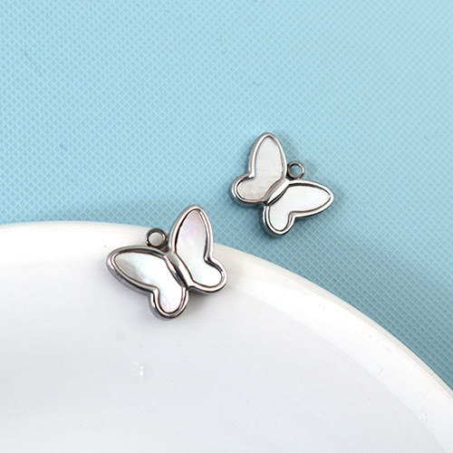 - 싼비즈 [8-113-18]써지컬스틸 펜던트 자개나비 12x10mm ,1개