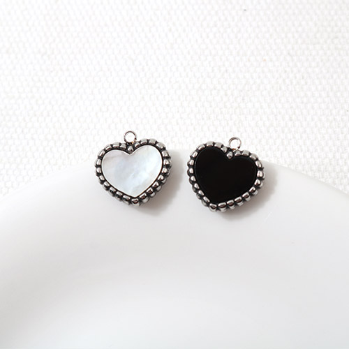 - 싼비즈 [8-118-10]써지컬스틸 자개,오닉스펜던트 엔틱볼륨하트 12x13mm ,1개