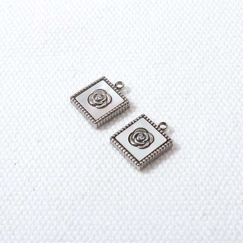 - 싼비즈 [8-118-01]써지컬스틸 펜던트 자개장미사각 10.5x13mm 무도금 ,1개