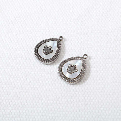 - 싼비즈 [8-118-02]써지컬스틸 펜던트 자개왕관물방울 12x17mm 무도금 ,1개