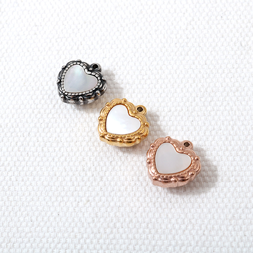 - 싼비즈 [8-118-10]써지컬스틸 펜던트 엔틱자개볼륨하트 12x13mm ,1개