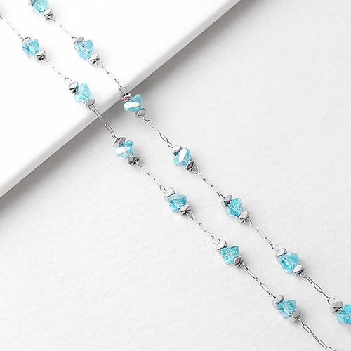 - 싼비즈 [8-255-01]써지컬스틸 체인 물방울 크리스탈 168 ,약50cm
