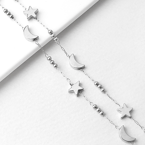 - 싼비즈 [8-255-05]써지컬스틸 체인 헤머타이트 달 별 229 ,약50cm