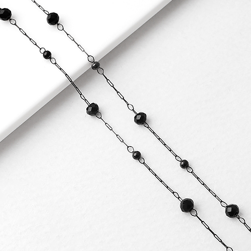 - 싼비즈 [8-256-01]써지컬스틸 체인 크리스탈 3.5mm 볼 2mm 블랙체인 130 ,약50cm