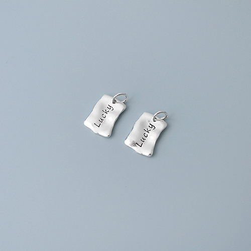 - 싼비즈 [8-512-16]순은펜던트 쭈글럭키태그+O링 7.5x10.5mm 실버925 무도금 ,1개
