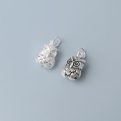 - 싼비즈 [8-515-05]순은펜던트 방울부엉이+O링 9x13.7mm 실버925 ,1개