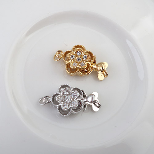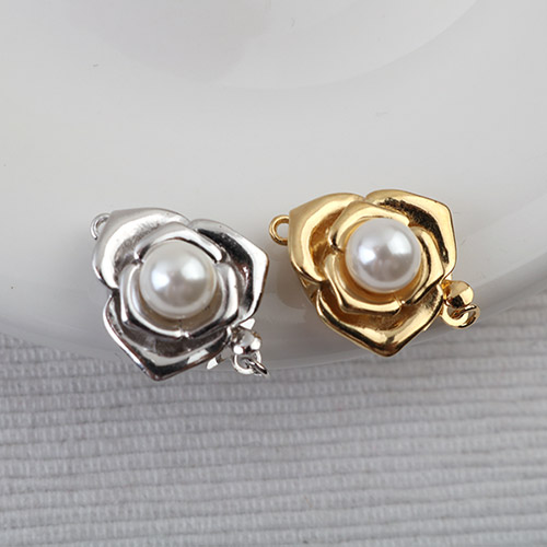 - 싼비즈 [8-681-06]순은부자재 실버클래습 진주삼각꽃 18x14mm 실버925 ,1세트
