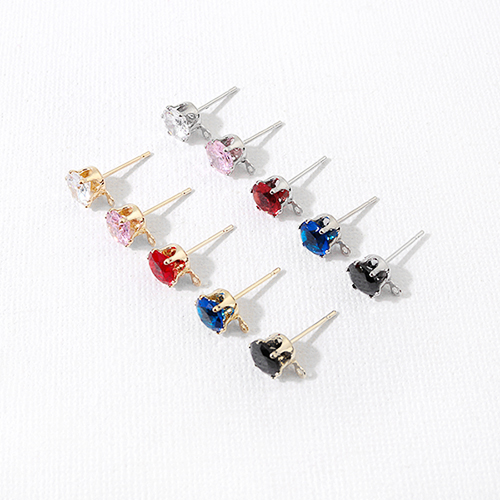 - 싼비즈 [9-587-15]큐빅하트한고리포스트 6.5x9mm 티탄침 고무클러치 ,1쌍(2개)