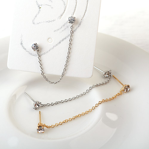 - 싼비즈 [9-606-04]스톤투웨이포스트 큐빅4mm+체인3cm 무니켈침 고무클러치 ,1개
