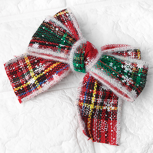 - 싼비즈 [6900-88]머리핀재료 키링재료 크리스마스 체크리본 약10x9cm ,1개