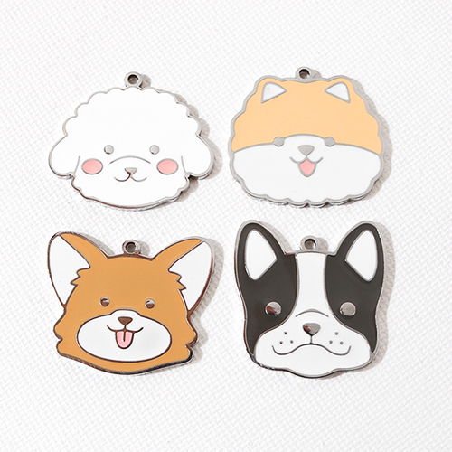 - 싼비즈 [8-133-14]써지컬스틸 펜던트 에폭강아지얼굴 무도금 ,1개